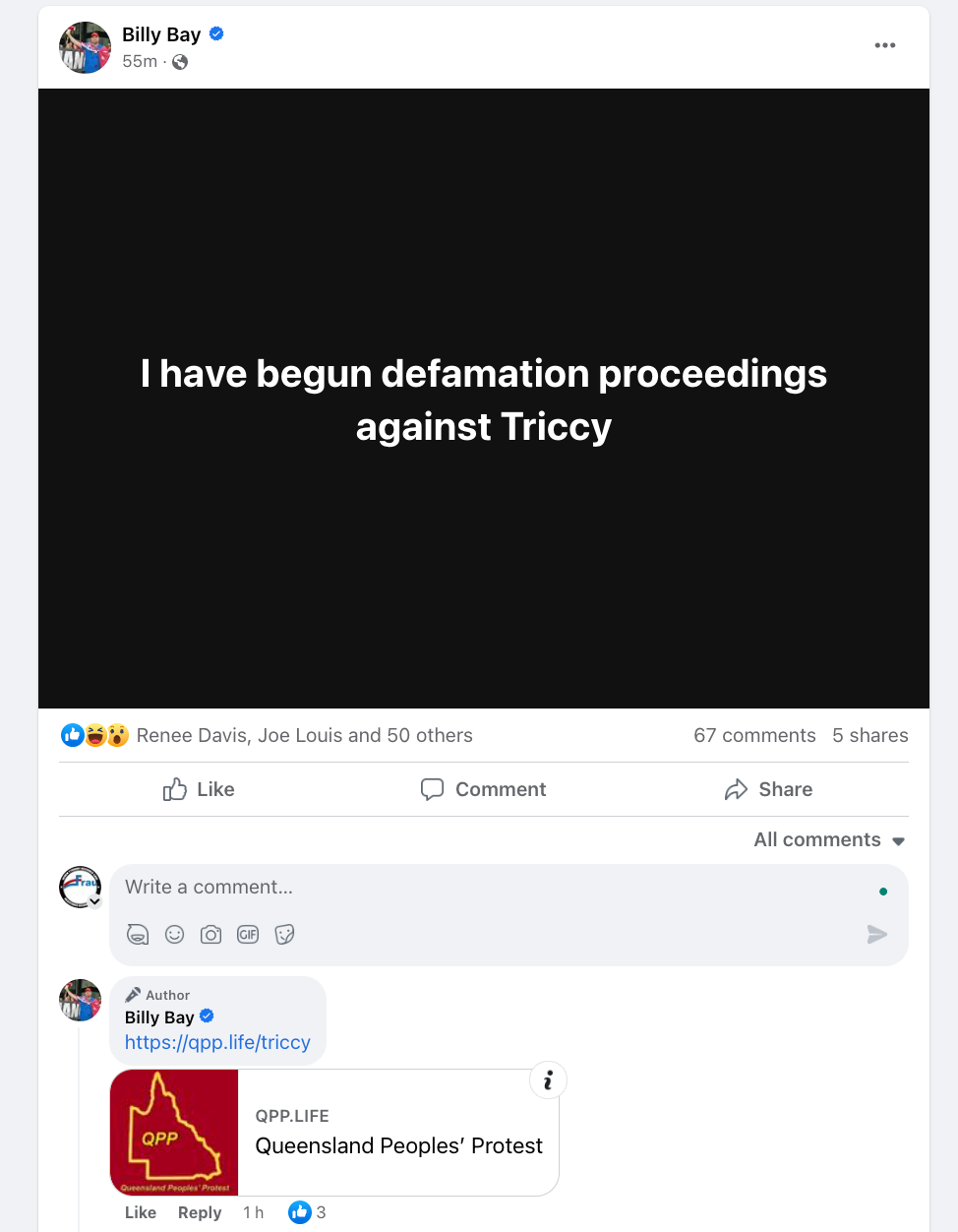 Rather than admitting to his mistake (I’m trying to be kind here) in claiming that he has won this case and the vote is dead, Billy has instead threatened Tristan with a claim of defamation.
