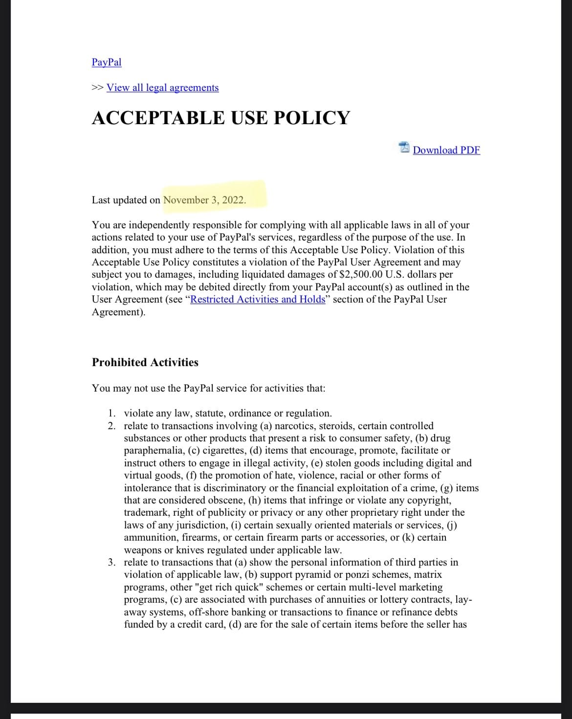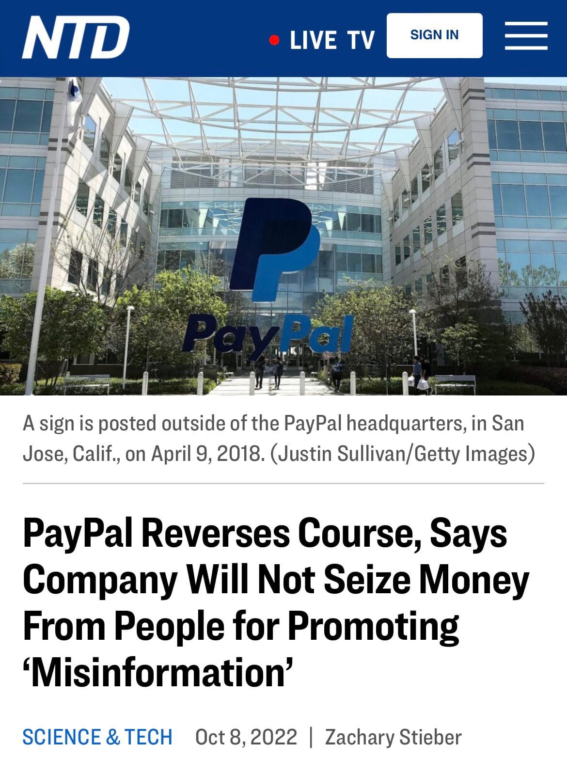 In a move that would only fool the most credulous, Paypal backtracked on this new policy and claimed that it had been issued “in error” and was “a mistake”. Indeed, one can only imagine that hundreds of employees, dozens of lawyers and the entire board had somehow slipped in typing up this policy and then - shock, horror! - pushing the send button when that was never intended. Or, perhaps not intended quite so soon. You see, the policy itself was dated November 3rd, 2022.