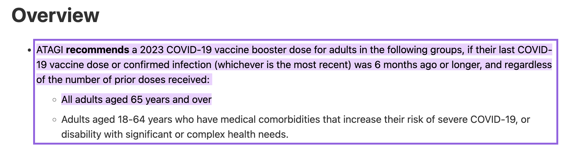 In fact, ATAGI in their ‘wisdom’ has stated the following overview: