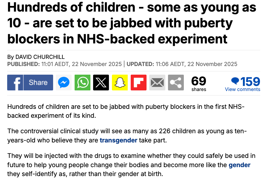 What I would like to know is - what parent would EVER sign the form to allow their children to be part of this ‘study’? The changes caused by puberty blockers are NOT reversible. These children will be chemically castrated / made infertile - even if they never have surgery to change the body they were born in.