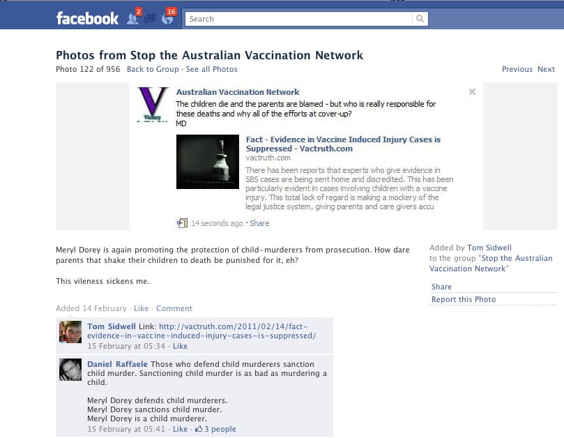From the beginning, SAVN made use of screen shots from our AVN Facebook page to attack not just myself, but others who posted there. It has become so scary for some of our members to share their knowledge and support on our Facebook page that they have either stopped posting altogether or signed up under assumed names so they will not be victimised in this way. Many people use their children's photos as their Facebook profile picture and they started to be afraid that their children would be victimised as a result so they removed the images and put something more generic up as their profile picture. Others increased the security of their Facebook page, blocking access to anyone who was not already their friend on Facebook. All in all, it had reached a point where what we had established as a safe place to discuss research, experiences and news about vaccinations had become anything but.