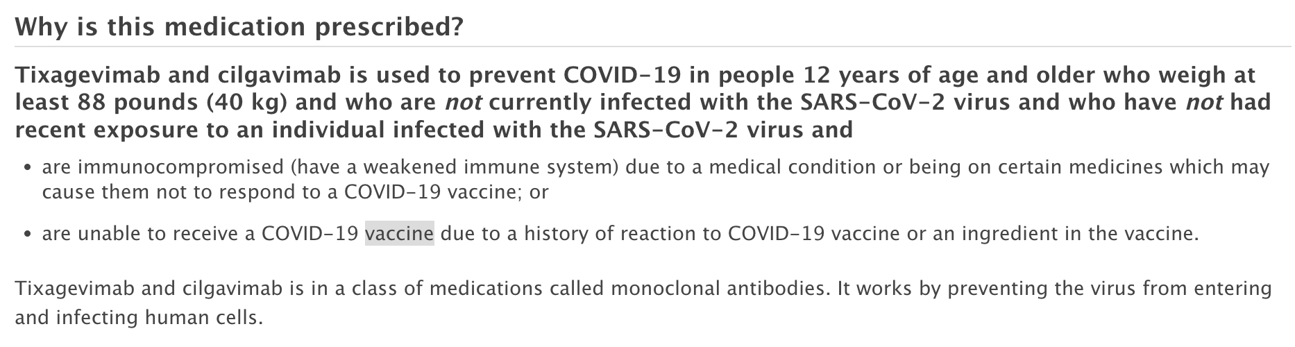 This specifies that the unvaccinated [sic] should be given tixagavimab plus cilgavimab within 12 days of symptom onset with COVID-19. What are these drugs exactly?
