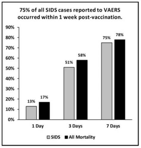 The findings in this study revealed that infant deaths and SIDS cases were not randomly distributed each day. Instead, infant mortality and SIDS cases reported to VAERS tended to occur in temporal proximity to vaccine administration, that is, they clustered in the early post-vaccination period—Day 1 through Day 7.