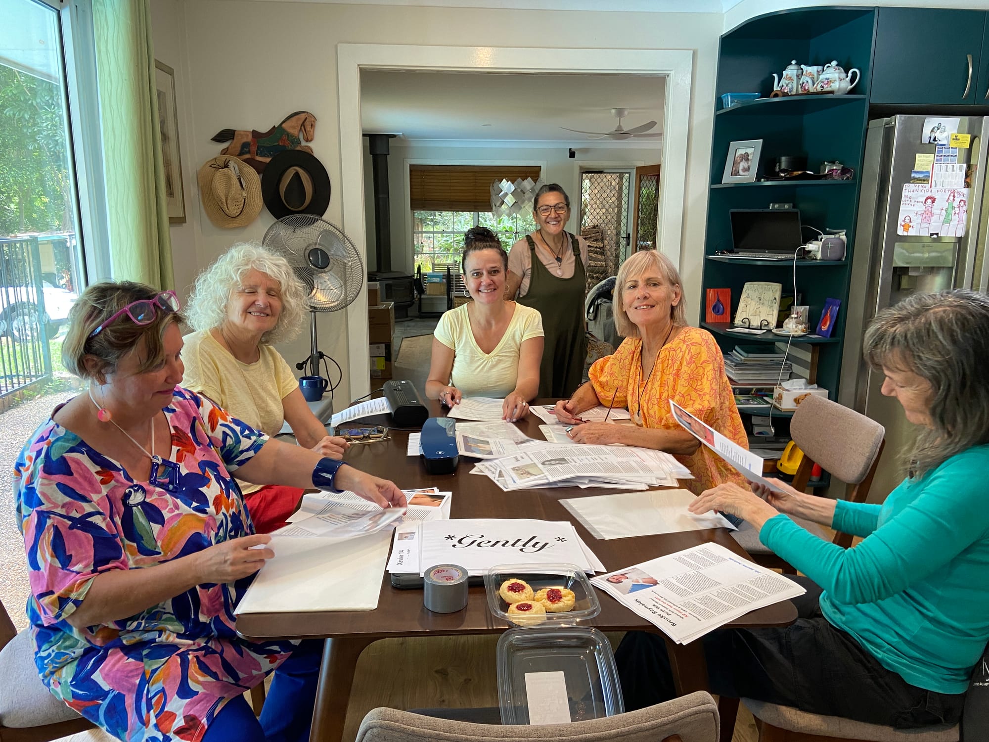 Yesterday, I was blessed to spend 4 hours among just such a group of people. Organised by Nina who is one of the major movers and shakers in the Murwillumbah, NSW area, 17 of us gathered together to laminate, assemble and create our forest which will be displayed every weekend from Tweed Heads South to Ballina and perhaps Grafton.