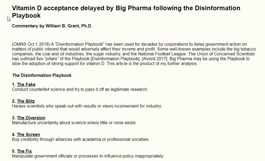 An article about how pHarma actively suppressed information on the ability of Vitamin Do to treat respiratory illnesses, much like they suppressed information about Hydroxychloroquine and Ivermectin.
