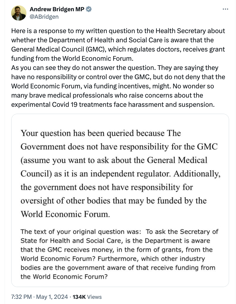 And speaking of FOI requests and governments wanting to hide the truth from those who pay their exorbitant salaries, this just in from British Hero MP, Andrew Bridgen: