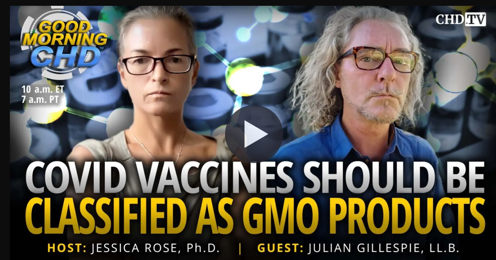 Shortly after that, Julian was interviewed by Dr Jessica Rose on CHD TV regarding the fact that these mRNA injections are GMOs and were approved and provisionally approved without undergoing the proper legally-required testing.