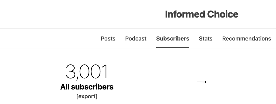 Milestone hit! over 3,000 free Substack subscribers to Informed Choice!