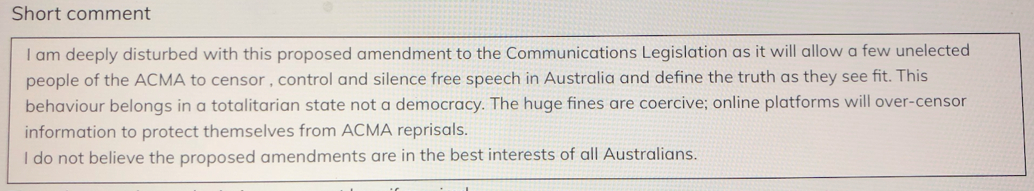 More of your submissions to ACMA in opposition to their plans to silence Australians