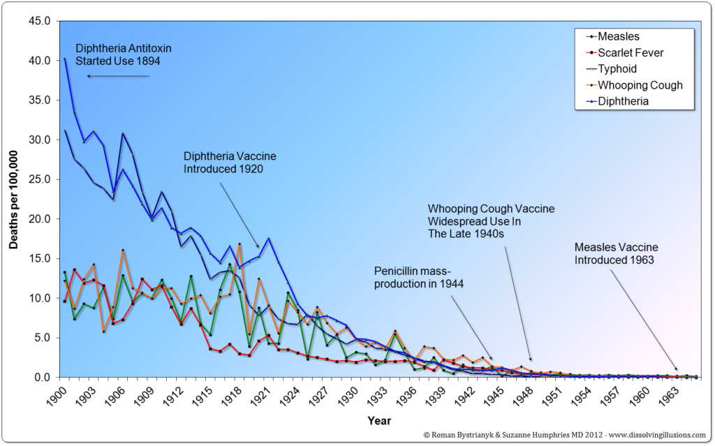 The evidence for this ‘fact’ we’ve all been told about vaccines saving lives is the irrefutable decline in deaths from infectious diseases throughout the 20th century.