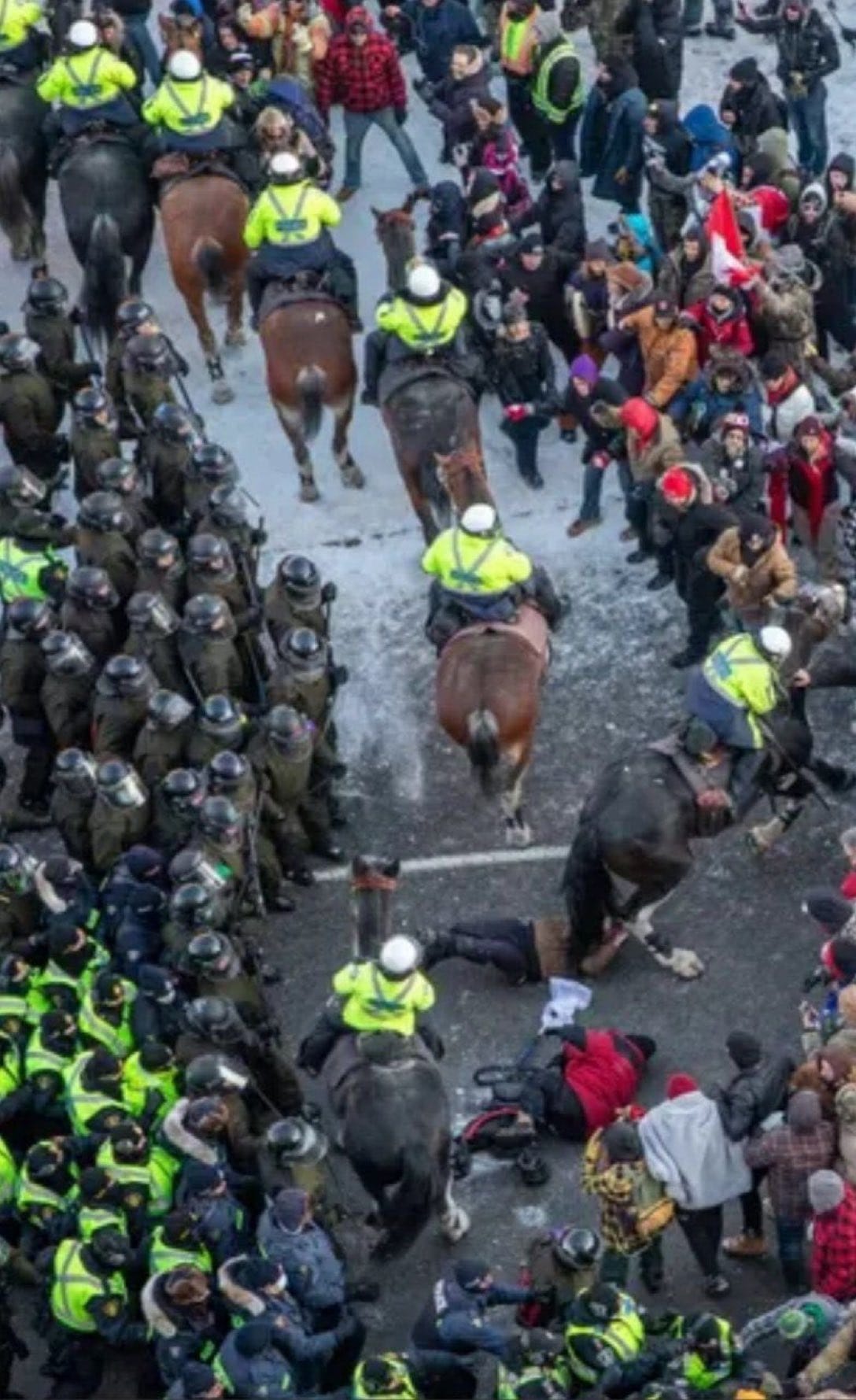 After nearly 2 years of witnessing brutality from our own police and military in Australia, you would think nothing would shock me, but when elderly women using the aid of a walker (in the red jacket pictured below) are mowed down by police horses and they don’t even stop to see if she is OK, I start to realise that this lack of humanity is the real epidemic and there is no treatment available or sought to prevent it. Reports are that this woman died in hospital but there is no confirmation of that.