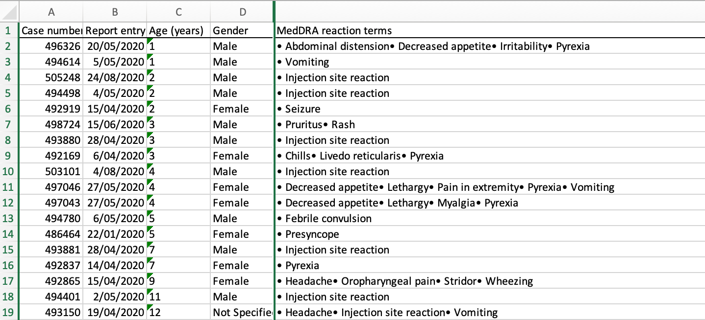 The table above lists the 18 reported reactions to influenza vaccines in children aged under 14. As far as we can tell, no follow-up has been conducted (follow-up is rare) so we don’t know the long-term outcomes for these children. What we do know is that the risk of death from influenza in children in Australia is close to nil.
