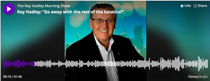 Ray Hadley, a radio host who stated that he would ban anyone from his program who did not march in lock-step with all government vaccination proclamations regardless of their evidence, personal situation or number of vaccine-injured or killed family members, did a segment on Kent Heckenlively where he spent more time discussing Mr Heckenlively's name than he did the subject matter at hand. Apparently, Mr Hadley's waters run very shallow indeed! He read an email from a listener in the Philippines who disagreed with Mr Hadley's bigoted opinion of people who believe that vaccine are not above question and retorted that this gentleman was now banned and he should "...go away with the rest of the lunatics!"