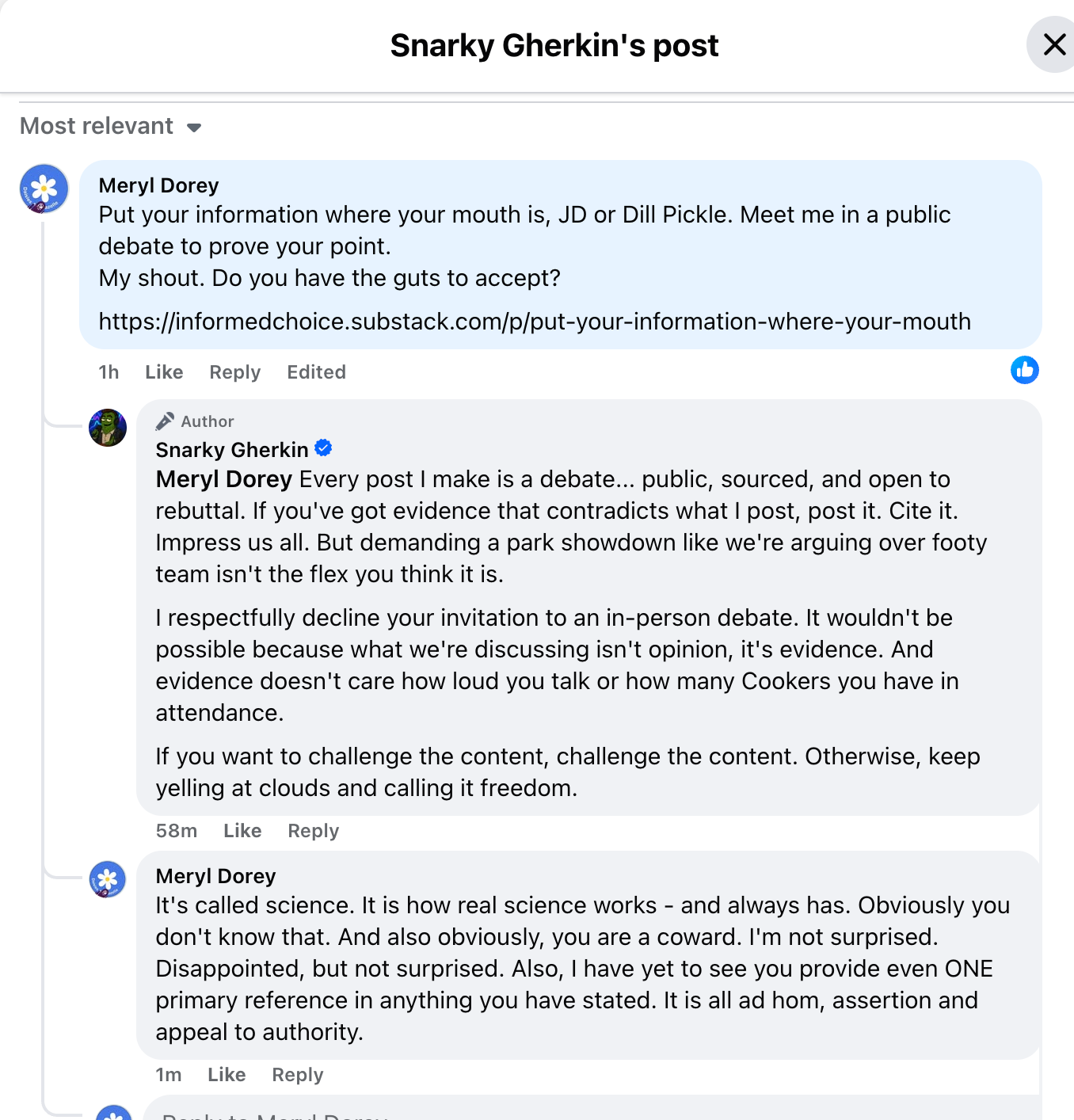 Big brave pickle was challenged. Big brave pickle showed his true cowardly side. Diddums.