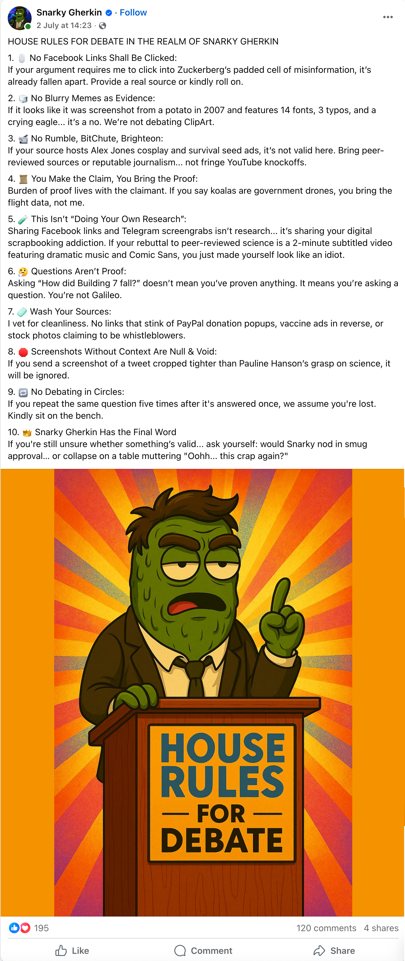 As the supreme irony, a few weeks ago, the pickle posted this on this Facebook Page.