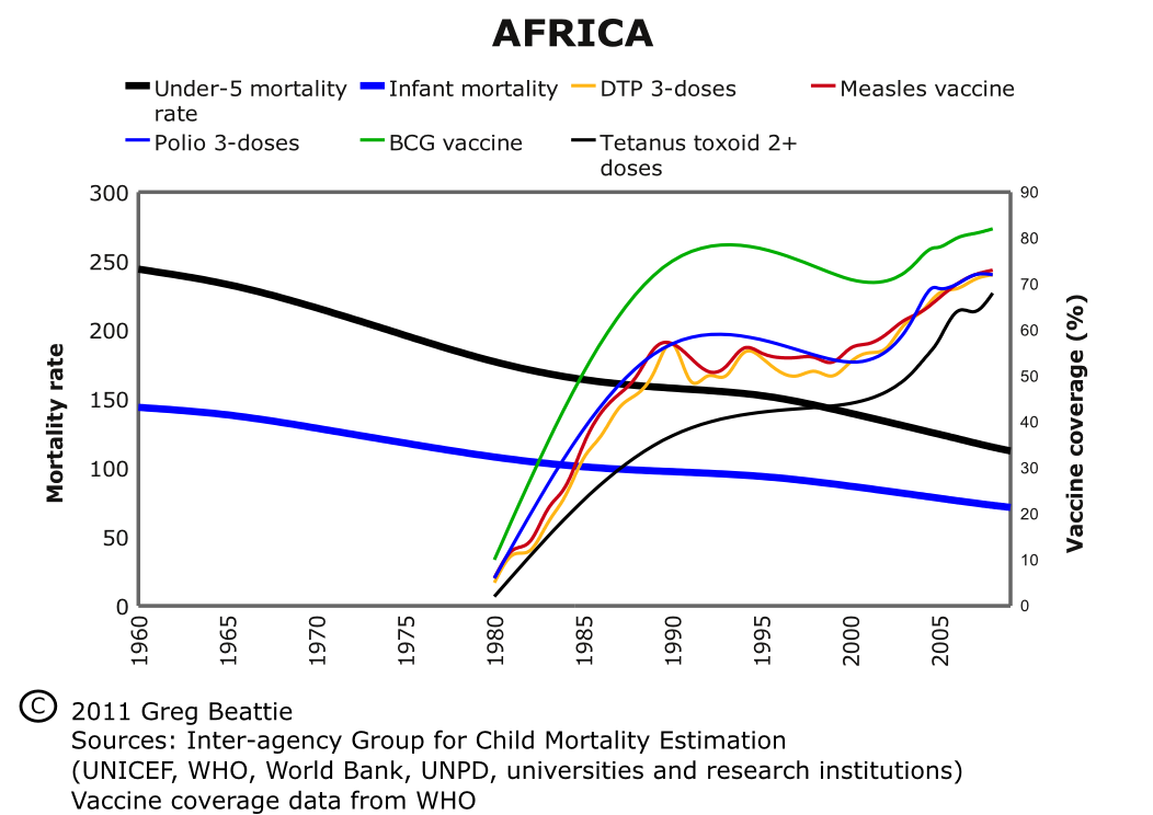 Child death rates versus vaccination, Africa.