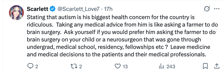 People and bots have been crawling out of the woodwork to criticise RFK Jr for wanting to find the cause of Autism so it can be prevented.