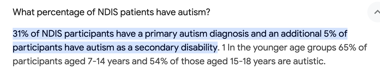 The whole article (which I think is behind a paywall but I will try to publish the relevant bits here) discusses how much the NDIS scheme is costing and how many more people it now needs to serve. But not ONCE is there even a question about why 1 in 25 Australians is predicted to be in need of disability support in the very near future.