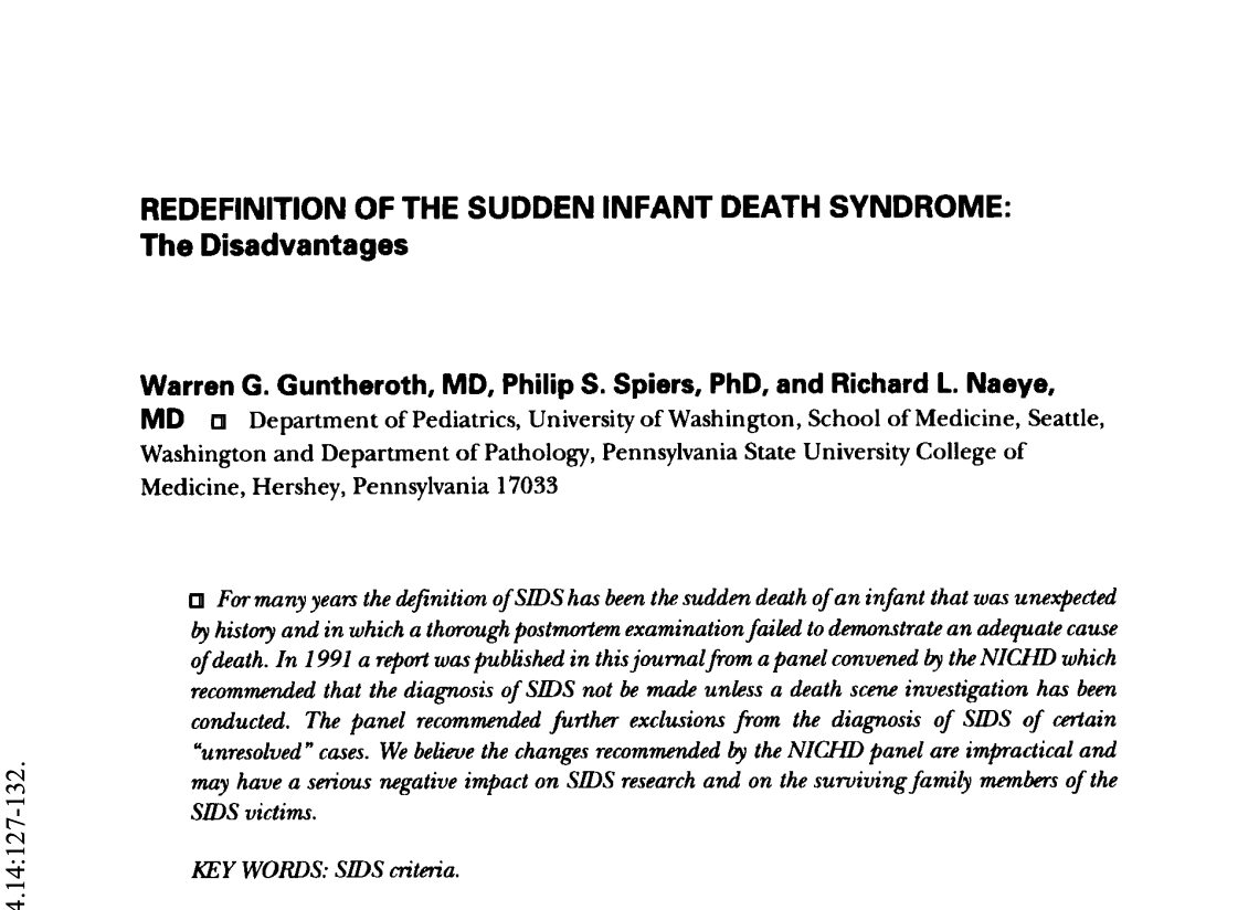 We need to define what SIDS actually is since many people are unaware, and the vast majority of deaths that have SIDS on the official paperwork can have alternative explanations.