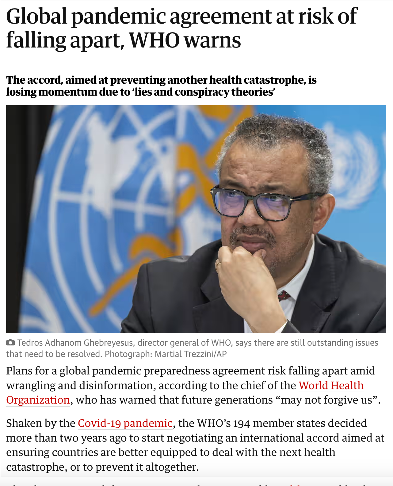 Tedros is watching the WHO Treaty/IHR fall apart. So sad-too bad! People power in action-you CAN make a difference!