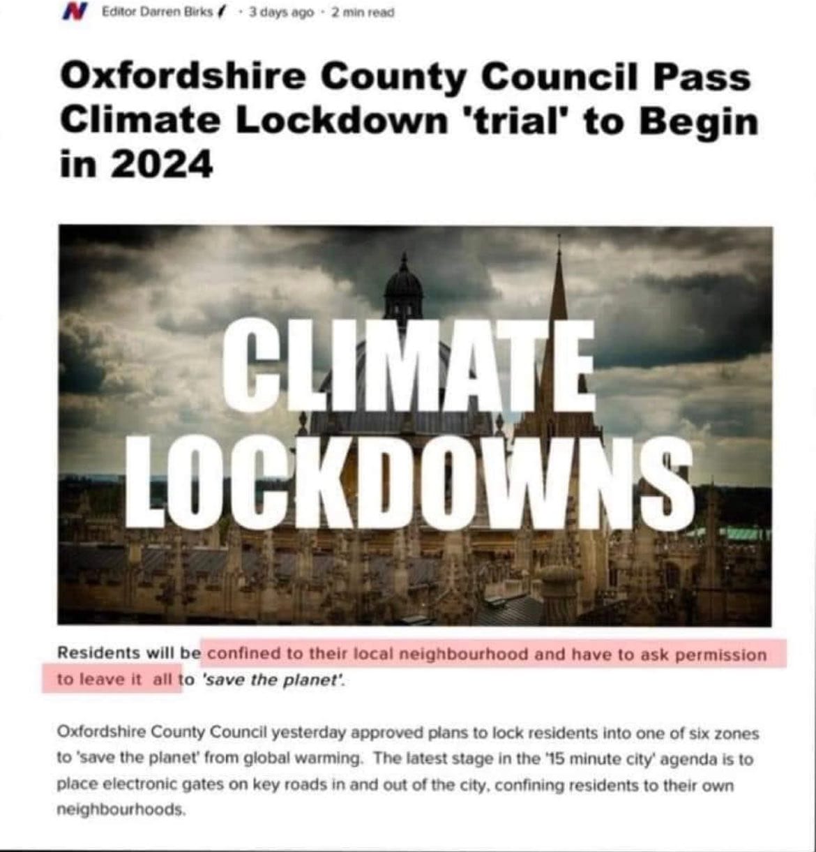 Oxfordshire in the UK recently announced a trial of Climate Lockdowns starting in 2024. And if you believe this will be a trial instead of a permanent level of restrictions even Victorians haven’t seen the likes of, I have a bridge in Brooklyn you might want to buy.
