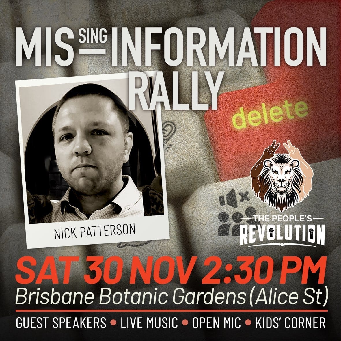 The MISsing Information Rally-Today, 30/11/24, Brisbane Botanic Gardens 2:30 PM
