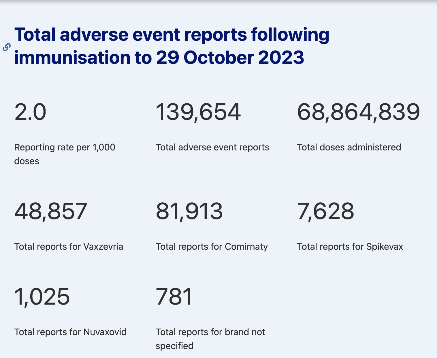 The last time the TGA issued a COVID jab safety report which in November last year, here is what they reported: