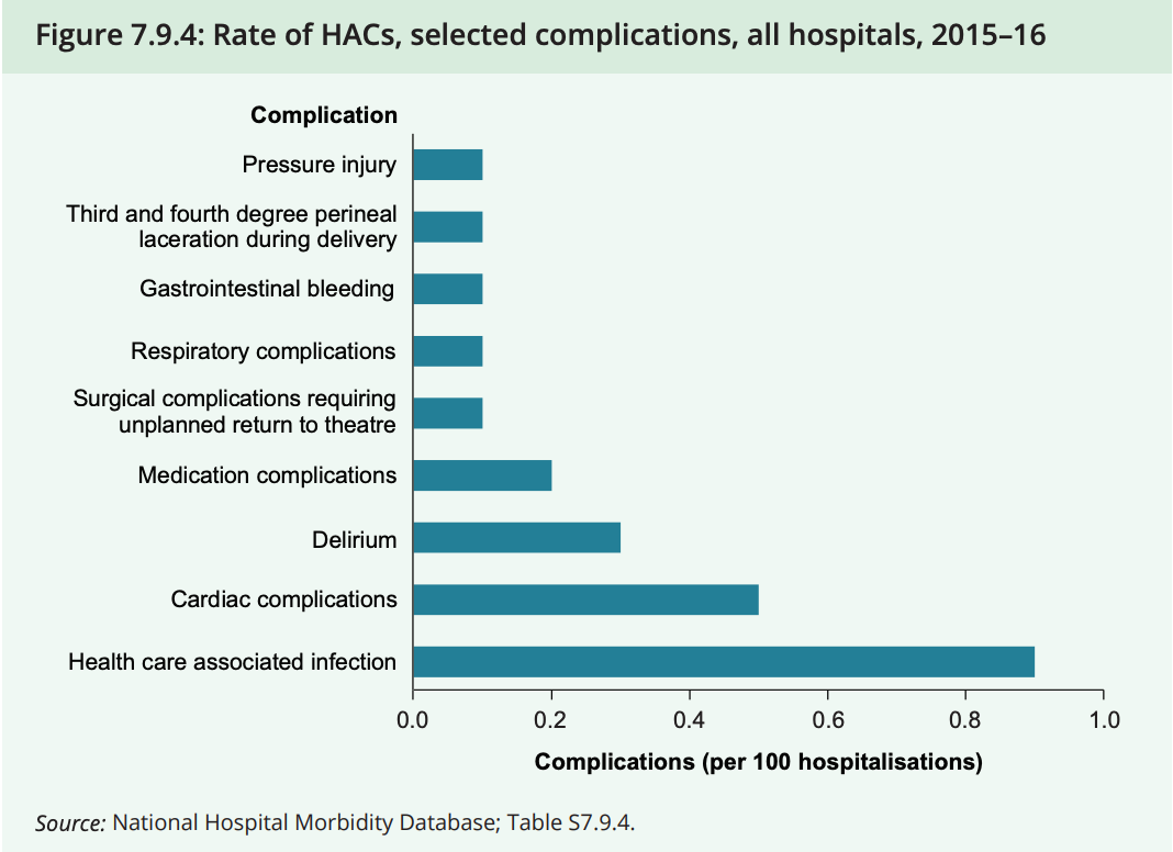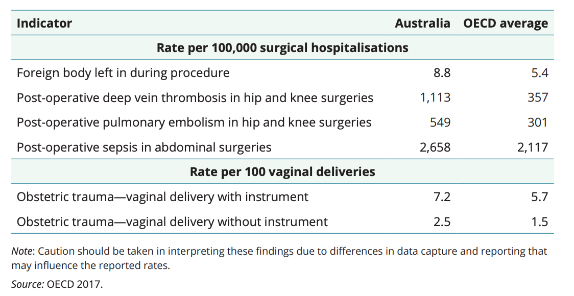 Survey after survey of the Australian hospital system shows that it is incredibly inefficient and dangerous. See this recent report from 2018 published by the Australian Institute of Health and Welfare. Below are just a couple of tables from this eye-opening survey - the latest of many showing very similar horrendous results from our failing hospital system.