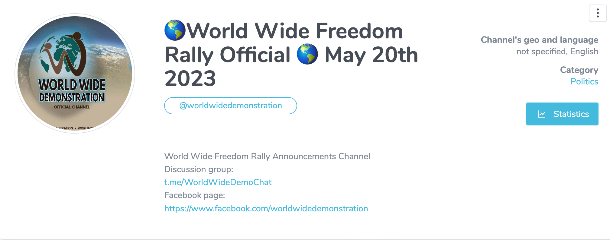 The telegram channel is https://tgstat.com/channel/@worldwidedemochat
