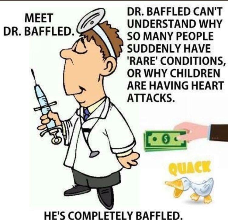 Perhaps if there was less cash changing hands within the medical authorities and professions, Dr Baffled who seems to be everywhere, might be able to work out the answer to what is causing this devastation? I think you and I already know the answer…💉💉💉💉