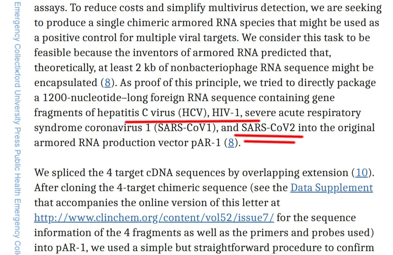 Perhaps someone reading this has the knowledge or expertise to compare this information with the primers used for the preparation of today’s PCR tests or the actual SARS-COV-2 genetic code we’ve been told was ‘discovered’ in Wuhan in 2019. If so, please do share in the comments or by email. If you want to write privately, send me an email at vaccinechoice@protonmail.com.