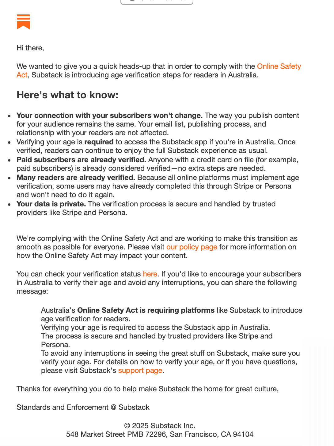 You see, Substack is NOT social media. And it is NOT being required by the Australian Reichstag to ask for age verification.